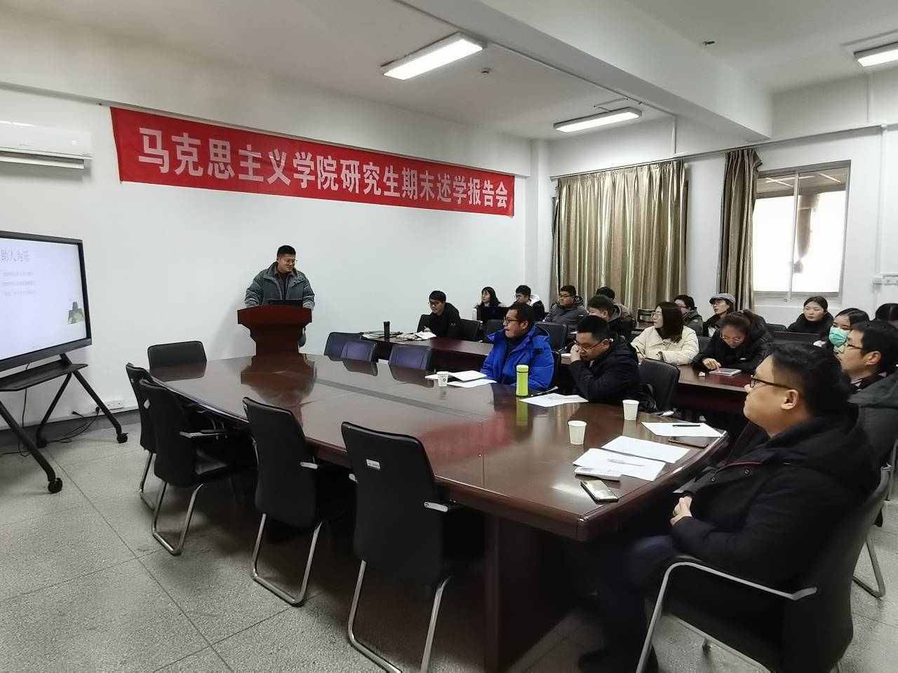 报告会伊始,全体研究生依次对自己2020年的学习、工作与生活情况进行总结汇报并分享自己的体悟收获。其中19级研究生郝宝平对自己一年来的研究成果进行了汇报,并结合自己的写作经历就论文写作谈了自己的认识和体会。20级研究生沈浩表示,在生活中自己积极参加志愿者,在镇江市图书馆参与社会公益活动,2020级研究生孙宁同学则表示,自己平时关心关注贫困地区儿童,为联合国儿童基金会提供力所能及的帮助。