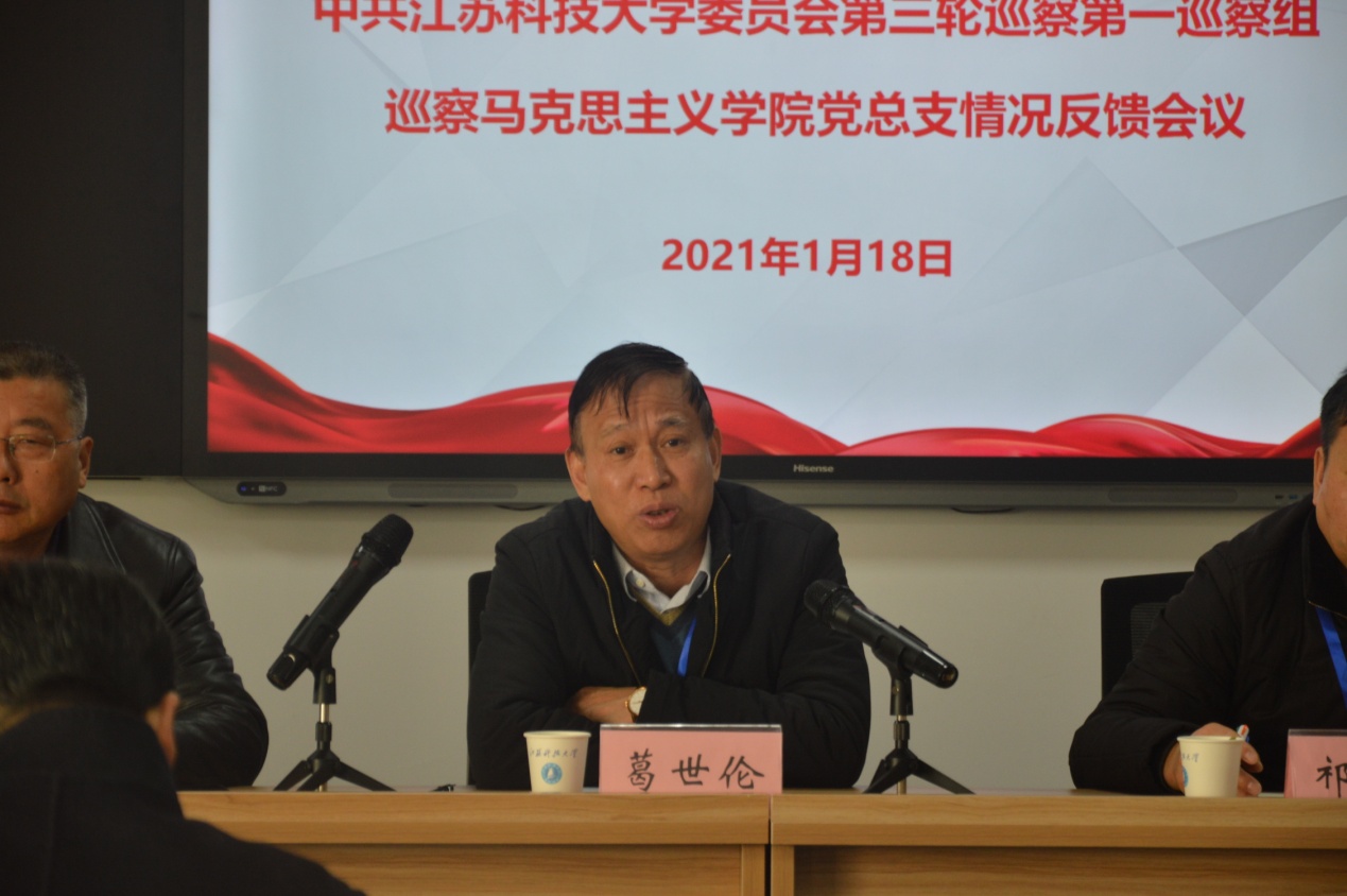 1月18号上午,公司党委第三轮巡察第一巡察组巡察公司党总支情况反馈会议在太阳成tyc122cc811会议室召开。第一巡察组组长、公司党委书记葛世伦,第一巡察组副组长吴君民,第一巡察组成员,太阳成tyc122cc全体领导班子成员和全体教职工参会,会议由公司党总支书记郭昭昭主持。