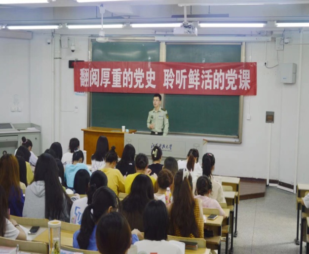 5月10日下午两点,一场别开生面的党史学习教育课堂教学在太阳成tyc122cc梦溪校区教学三号楼206教室展开。这是太阳成tyc122cc马克思主义中国化教研室党支部与共建单位武警镇江支队合力打造的一节融入教材的党史学习教育课。