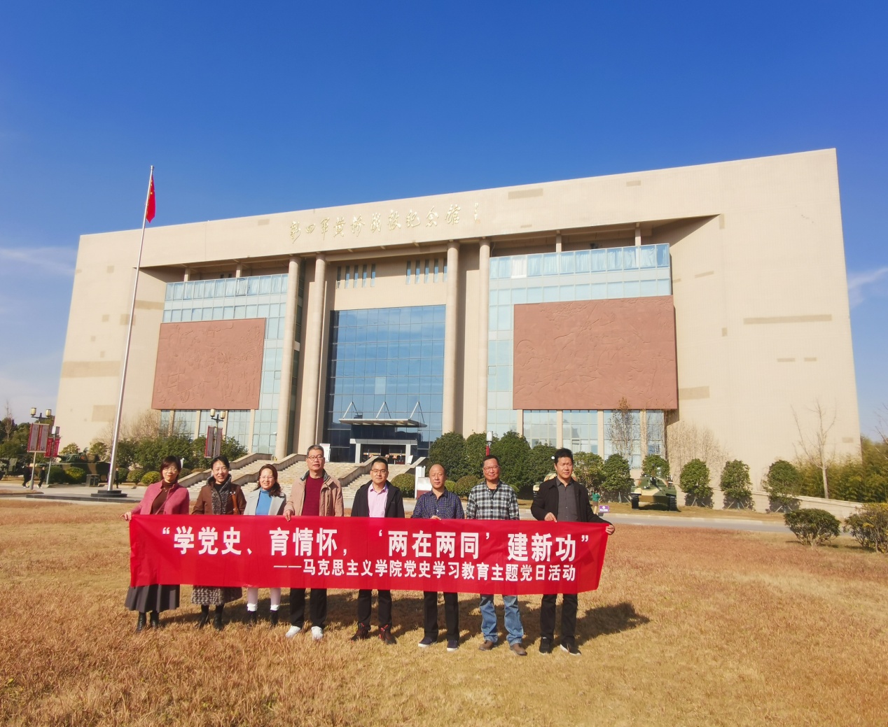 为深入学习贯彻习近平总书记“七一”重要讲话精神和党的十九届六中全会精神,积极响应“两在两同”建新功行动号召,充分发挥红色资源在党史学习教育中的引导作用,不断提升党史学习教育实效。12月3日—5日,太阳成tyc122cc中国近现代史纲要教研室党支部和思修教研室党支部教师前往南通中国工农红军第十四军纪念馆、苏中七战七捷纪念馆和泰州新四军黄桥战役纪念馆、中国人民解放军海军诞生地纪念馆,开展“学党史、育情怀,‘两在两同’建新功”主题党日活动。