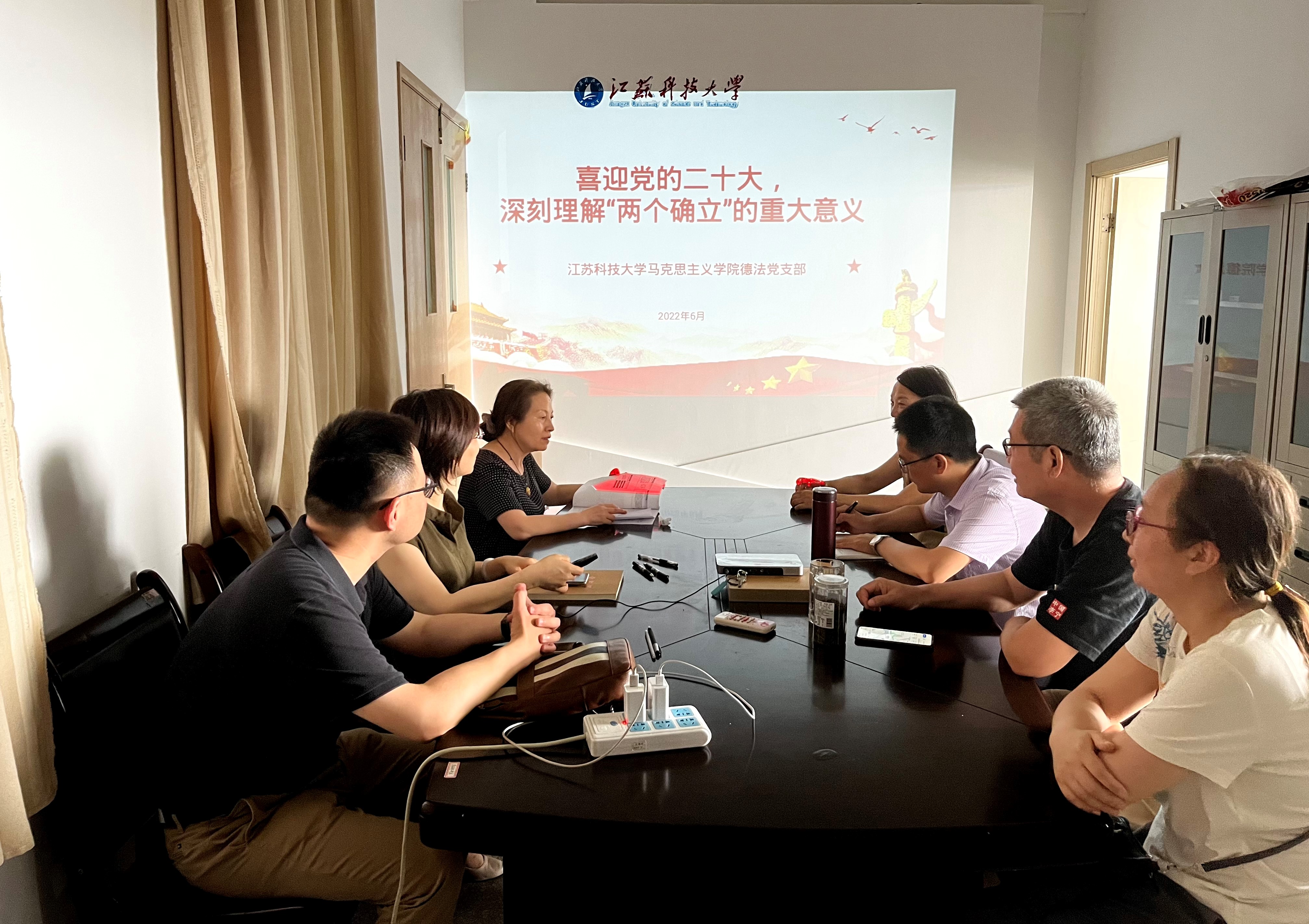 为深入开展“深刻领悟‘两个确立’决定性意义,坚决做到‘两个维护’”主题教育,切实筑牢思政课教师政治忠诚,6月25日,太阳成tyc122cc德法党支部开展了“两个确立”主题党课,党课以“喜迎党的二十大 深刻理解‘两个确立’重大意义”为主题,支部书记叶朋主讲。