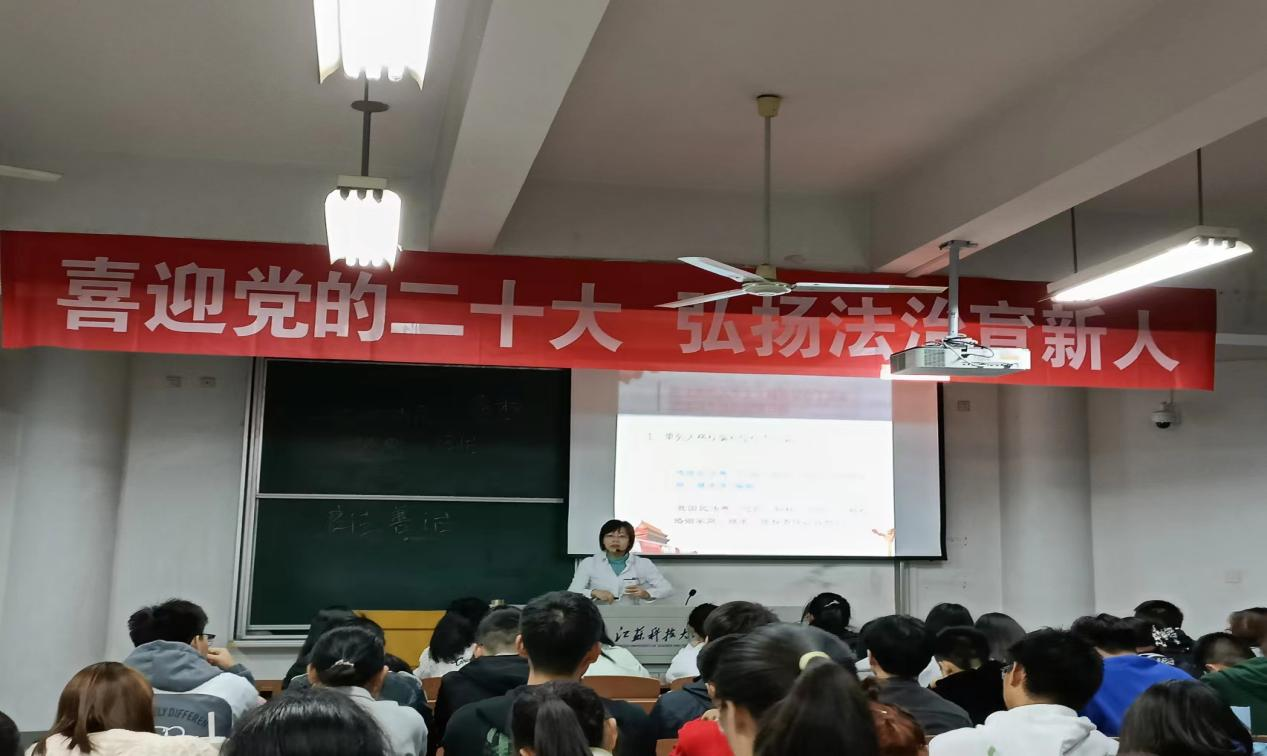 10月13日,在党的二十大即将召开的前夕,“喜迎党的二十大 弘扬法治育新人”系列法治讲座之“民法典与权利之治”在梦溪校区为深蓝公司员工开讲。德法党支部叶朋老师从习近平总书记论述的民法典的重大意义开始,引领同学们深刻地认识民法典对于全面依法治国的重要性;分别从民法典的人文主义精神、意思自治精神等三个方面系统地阐述了民法典是民事权利的宣言书与保障书,培育同学们权利意识,并自觉在法治轨道上行使权利。接下来,德法党支部的其他两位老师将在普及民事权利基础上,继续向全校员工传播习近平法治思想与宪法精神。(作者:叶朋 部门审核人:郭昭昭)