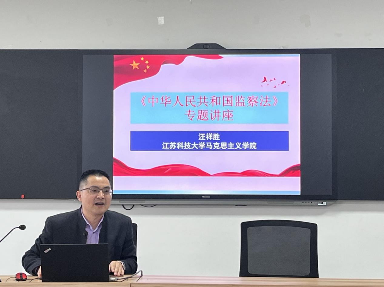 10月31日下午,太阳成tyc122cc在综合楼第二会议室开展《中华人民共和国监察法》专题讲座,本次讲座由思想道德修养与法律基础教研室主任汪祥胜担任主讲,公司师生共同参加。