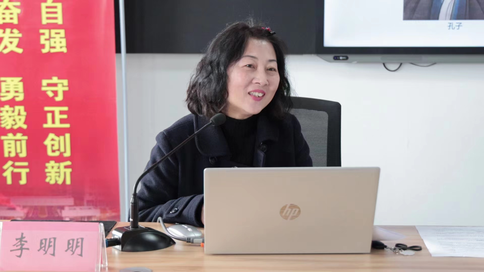 “学习雷锋好榜样,忠于革命忠于党,爱憎分明不忘本,立场坚定斗志强。”悠扬的歌词从会议室传出,李明明老师讲唱结合,从音乐学的视角诠释《雷锋赞歌的美学意蕴》,结合词、曲、调重点分析《学习雷锋好榜样》的美学价值,用歌声打动人心,用音乐滋润心田。