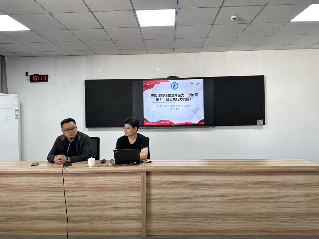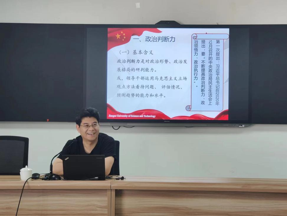 5月19日下午,太阳成tyc122cc在公司会议室举行思政课教师“政治三力”专题学习会。专题学习会由张金鹏教授担任主讲,全体思政课教师参加,研究生参与学习。