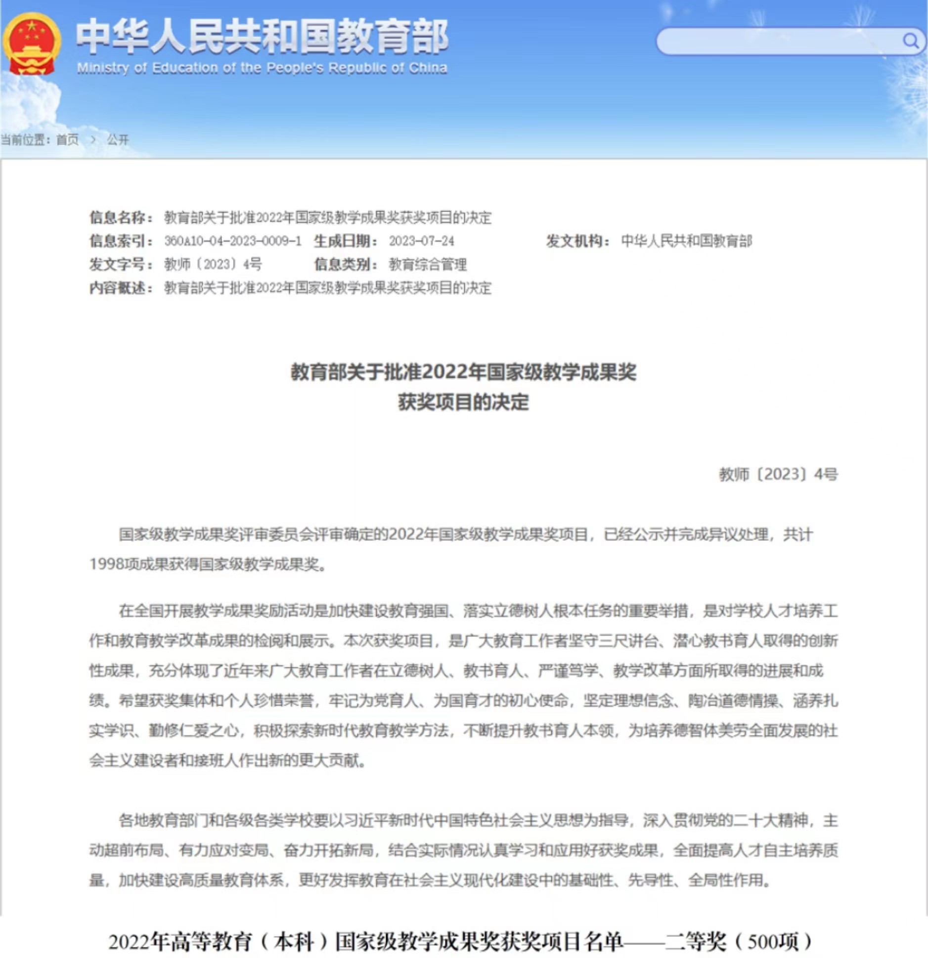7月24日,教育部公布了《教育部关于批准2022年国家级教学成果奖获奖项目的决定》(教师〔2023〕4号)。公司《船海类高校老员工“1621”素质培养模式的构建与实践》成果喜获高等教育(本科)国家级教学成果奖二等奖,实现公司国家级教学成果奖的历史性突破。