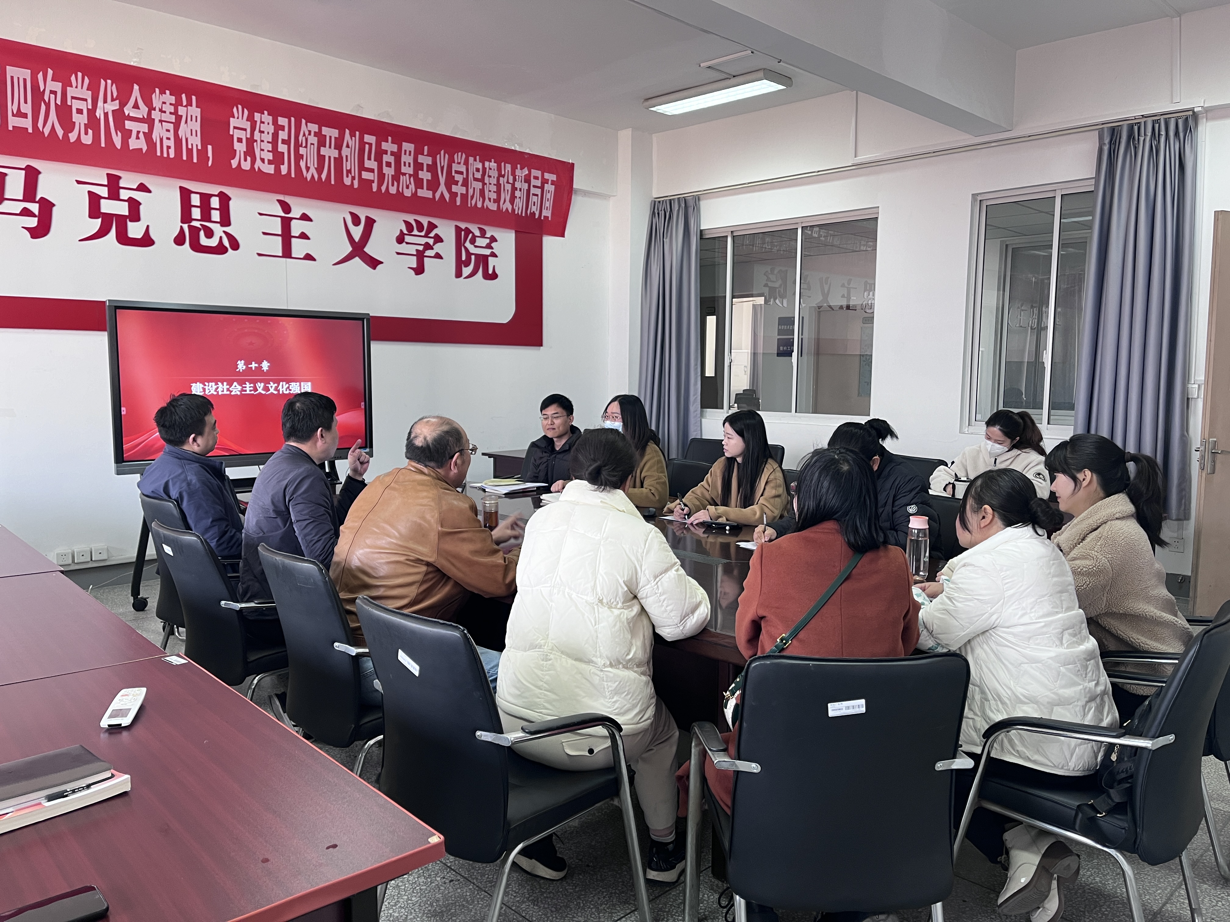 教研室董文凯、黄晓妹和杨婷三位教师分别就课程第七章“社会主义现代化建设的教育、科技、人才战略”、第八章“发展全过程人民民主”、和第十章“建设社会主义文化强国”进行了试讲。与会教师就试讲中的问题展开集中讨论,就进一步提升教学质量,提高教学效果提出了系列建设性意见与建议。