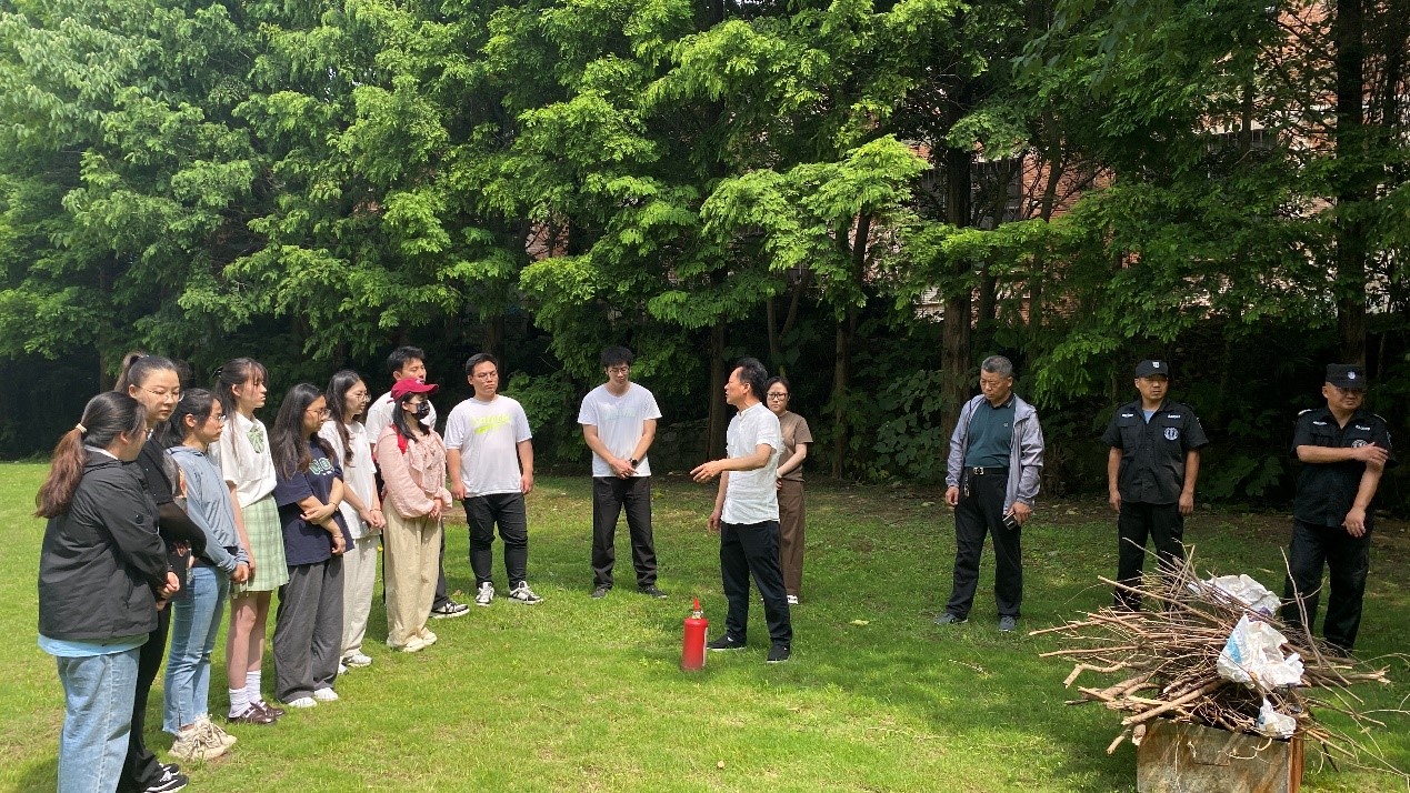 活动现场,保卫处张主任向同学们传授了火灾发生时的逃生应对方法等安全知识,讲解了灭火器一提、二拔、三瞄、四压的灭火步骤,然后指导同学们在空地上使用干粉灭火器进行灭火演练。在演练中,张主任强调了干粉灭火器的使用技巧和注意事项,如把控灭火距离、对准火苗根部、注意实时风向、保持冷静镇定等。同学们在指导下亲身操作,最终掌握了灭火器的使用方法,切实提升了自身的安全素质。