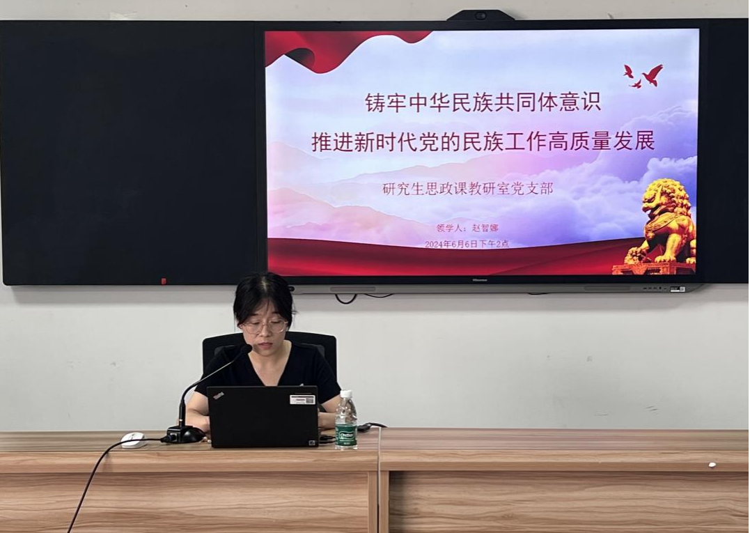 为全面贯彻落实习近平总书记关于民族工作的重要讲话精神,深化民族团结进步教育,铸牢中华民族共同体意识,引导师生深刻认识民族团结工作的重要性,马克思主义公司于6月6日开展主题学习,会议由研究生思政课教研室党支部书记刘海峰主持,支部全体成员参加。