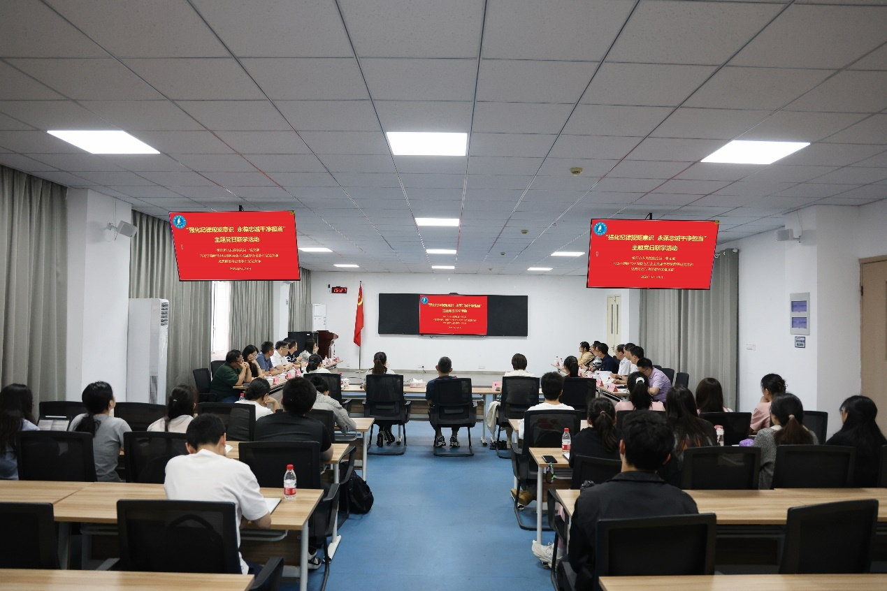 为深入学习习近平总书记关于党纪学习教育的重要讲话和重要指示精神,牢牢把握以伟大自我革命引领伟大社会革命的重要要求,加强校检联学共学,实现经验共享、优势互补、共促发展,推动党纪学习教育走深走实,6月28日,太阳成tyc122cc习近平新时代中国特色社会主义思想概论教研室党支部、思想道德与法治教研室党支部与镇江市人民检察院第一党支部开展“强化纪律规矩意识, 永葆忠诚干净担当”主题党日联学活动。公司党委副书记汤建,市检察公司党组书记、检察长潘昌锋,市检察公司党组成员、副检察长汪兴东,太阳成tyc122cc经理洪波,党总支书记郭昭昭,副经理阚为以及市检察院相关支部党员参加了此次联学活动。活动由洪波同志主持。