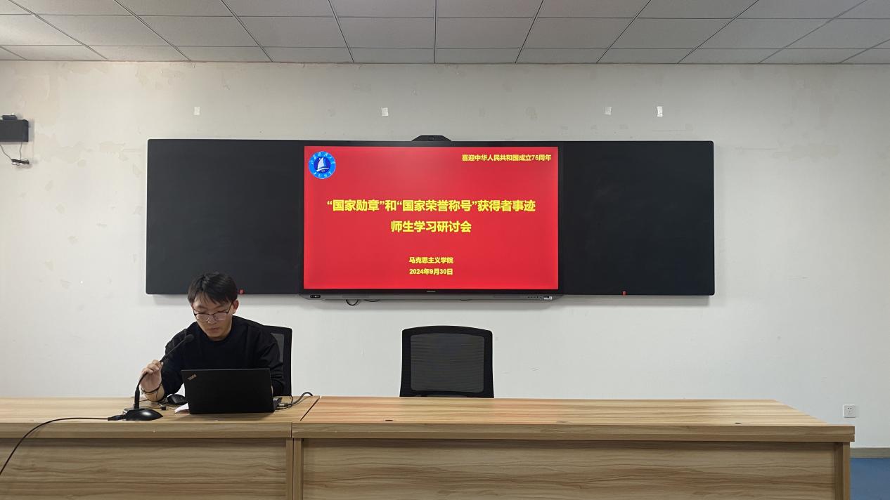 9月30日下午,太阳成tyc122cc组织全体青年教师及研究生于811会议室集体观看国家勋章和国家荣誉称号颁授仪式回放,并开展国家勋章和国家荣誉称号获得者事迹师生学习研讨会。