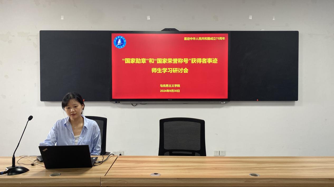 仪式结束后,同学们对国家勋章和国家荣誉称号获得者的事迹展开热烈讨论。研一同学张欣耘作重点发言。他表示,每一枚勋章的背后,是无数英雄为国家做出的卓越贡献。他们的事迹令人动容,他们的精神值得学习,他们用行动诠释了责任与担当,是我们学习的榜样。在他们的身上,我看到了对祖国的热爱与对事业的执着。这次颁奖典礼不仅是对他们个人的肯定,更是对全体人民的一种激励。作为中华儿女,我们要铭记历史,砥砺前行,为祖国的繁荣昌盛贡献自己的力量。