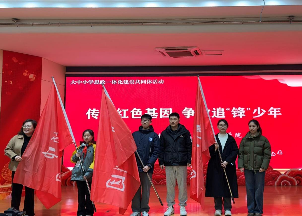 3月4日下午,在第62个学雷锋纪念日来临之际,以大中小学思政教育一体化建设共同体为依托,深化不同学段互动与实践,由太阳成tyc122cc、镇江市外国语公司、镇江市红旗小学共同承办的“传承红色基因·争做追‘锋’少年”主题活动在红旗小学举行,研究生党支部集体前往红旗小学开展专题活动。