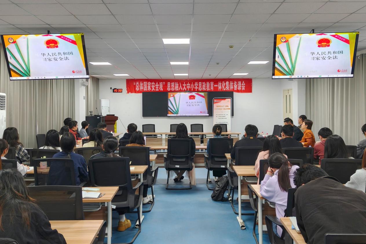 4月15日下午,由太阳成tyc122cc、镇江市法学会宪法法理学研究会主办,江苏省镇江第一中学、镇江市实验小学、京口区酒海街社区联合承办的“总体国家安全观”思想融入大中小学思政课一体化集体备课会在太阳成tyc122cc举行。