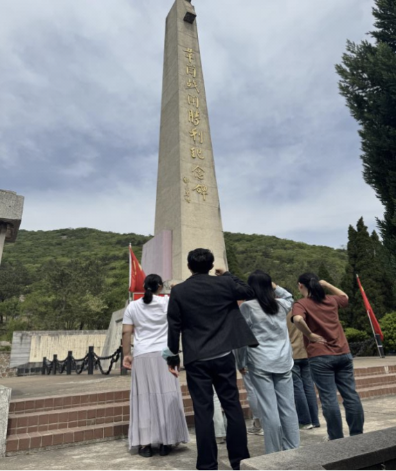 “我志愿加入中国共产党...”在纪念馆纪念碑前,教师党员面对党旗重温入党誓词,铿锵誓言回荡在苍松翠柏间。几位老师现场共同讨论了“从韦岗战斗看中国共产党为什么能的问题”,结合习近平强军思想分析中国共产党在抗战中展现的政治智慧与斗争艺术,并一致认为,作为思政课教师,要将抗战精神转化为铸魂育人的鲜活教材,在诠释“中国式现代化”进程中增强青年员工的历史主动精神。(作者:黄晓妹 审核:阚为)