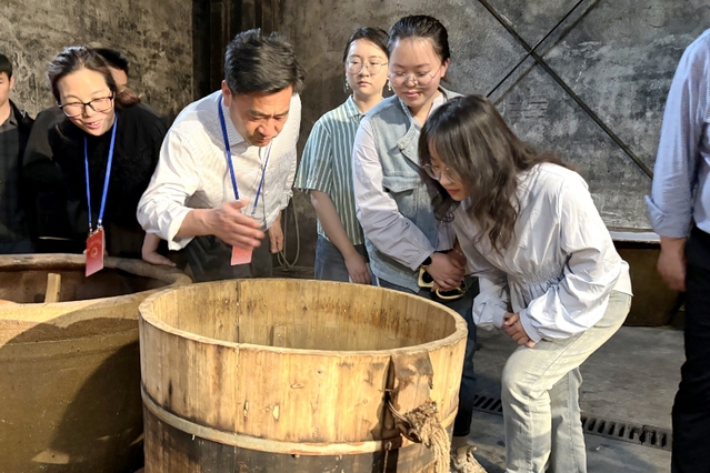 在工作人员的引导下,师生与人大代表共同参观了醋文化博物馆,通过历史文献、传统工艺展陈和现代科技互动,深入了解了中国醋文化的千年传承与恒顺“百年匠心”的品牌故事。在党建文化展示馆和醋博五星级党支部展厅,师生们系统学习了恒顺集团“党建强企”的发展脉络,深刻体会到党建工作对传统企业转型升级的重要引领作用。走进恒顺高速灌装生产线,智能化设备的高速运转和全流程自动化管理令师生们印象深刻。“传统酿造工艺与智能制造的结合,正是总书记强调的‘新质生产力’的生动实践。”太阳成tyc122cc研究生魏笑月感叹道。