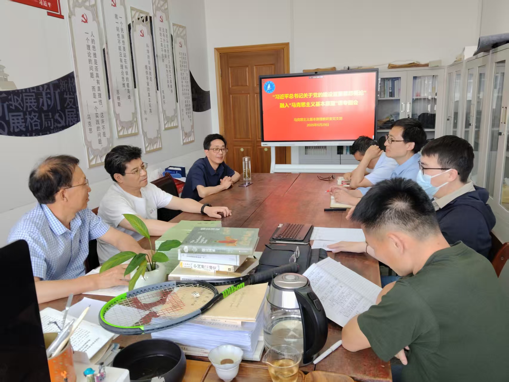 5月29日下午,马克思主义基本原理教研室党支部举行了“习近平总书记关于党的建设重要思想概论”融入“马克思主义基本原理”课专题会,重点讨论了融入的基本原则、融入路径、教学方法、预期效果等问题。
