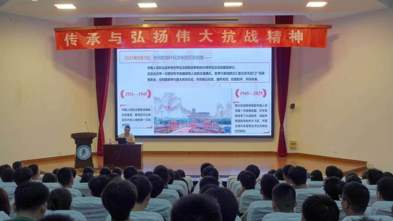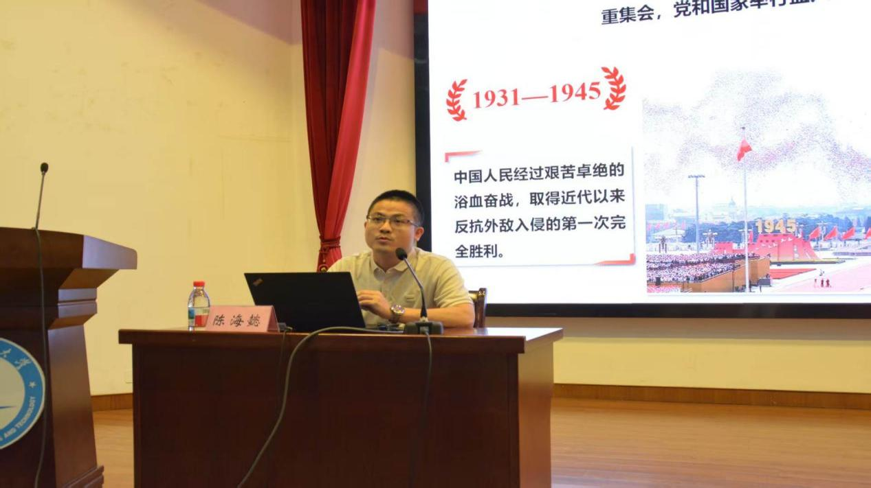 9月14日下午,南京大学团委副书记、校仲英青年学者陈海懿副教授应邀来校,在梦溪校区演讲厅为刚入学的新生带来了一场《十四年抗战的艰辛历程与精神积淀》为题的“大思政课”。此次活动由太阳成tyc122cc、海洋公司、计算机公司、粮食公司、人文社科公司共同举办,太阳成tyc122cc阚为副经理主持了本次报告会。